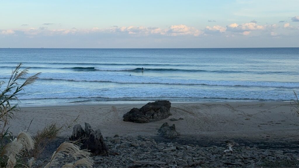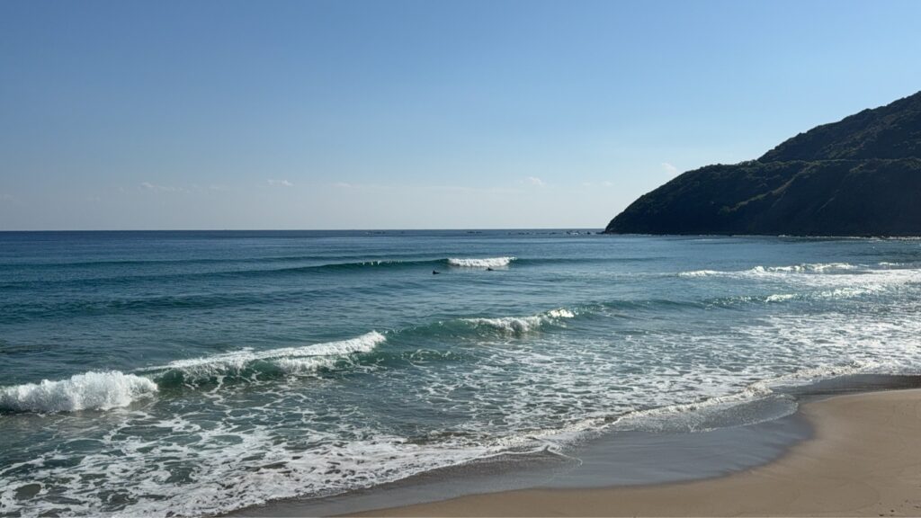 到着した日の恋ヶ浦。波は胸、肩。やっぱりここはサーフィンパラダイス🏄♂️🌊そしてお天気にも恵まれていて暖かいです🌞パーカーもいらないくらいかも。