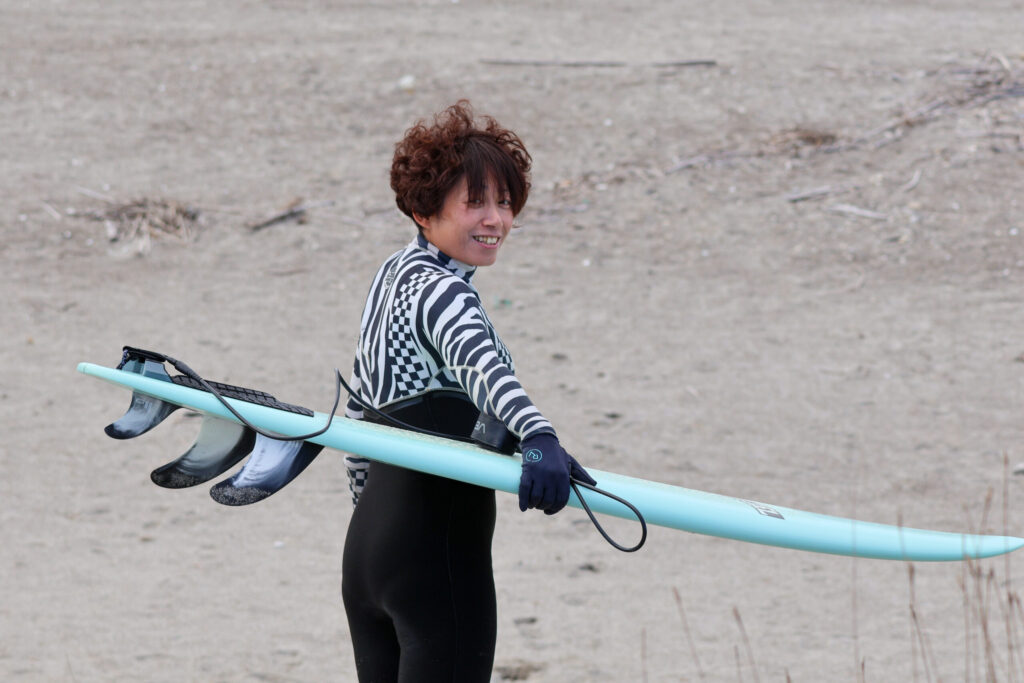 その後、吹上浜に戻りヒザ〜モモくらいの波で少し、サーフィン🏄♂️🌊