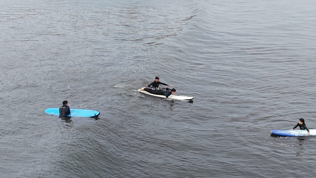 初めてのサーフィン。少人数制なので、順番がすぐに来るからたくさん練習できた!!という感想も^^